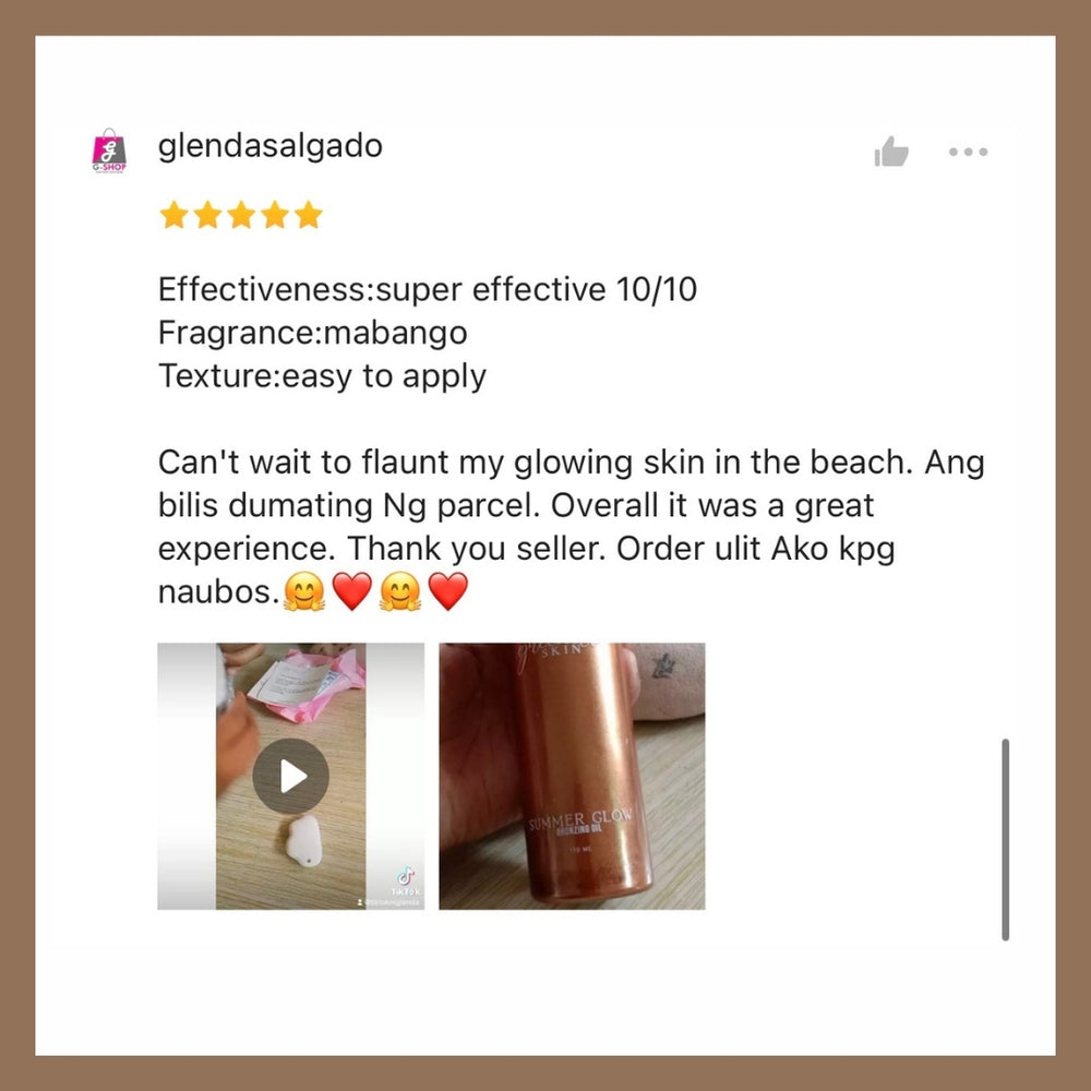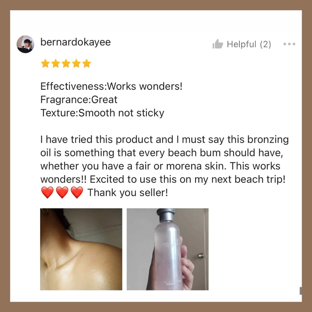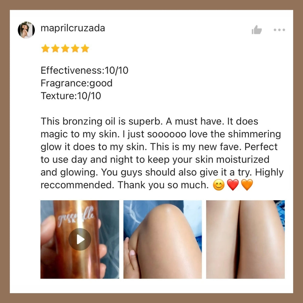 Bronzing oil is perfect para sa instant glow-up! It gives your skin that sun-kissed, radiant look—parang fresh from the beach kahit wala ka pa sa beach.